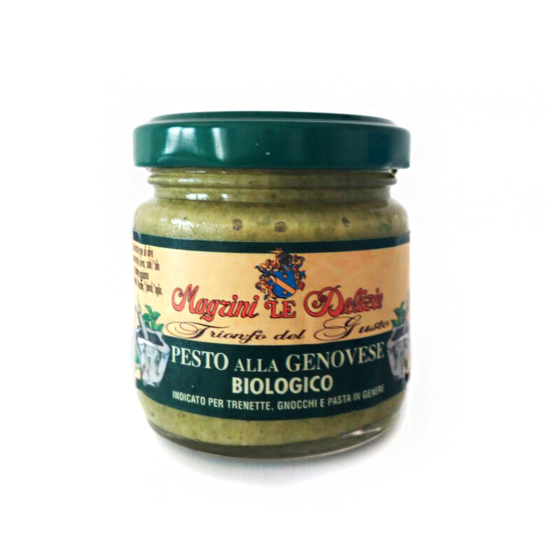 Basil in extra virgin olive oil 48% (*basil, *extra virgin olive oil, salt) *extra virgin olive oil*, *parmigiano reggiano (*milk, rennet, salt), *butter, *almonds, *pine nuts, *garlic. (*Organic)